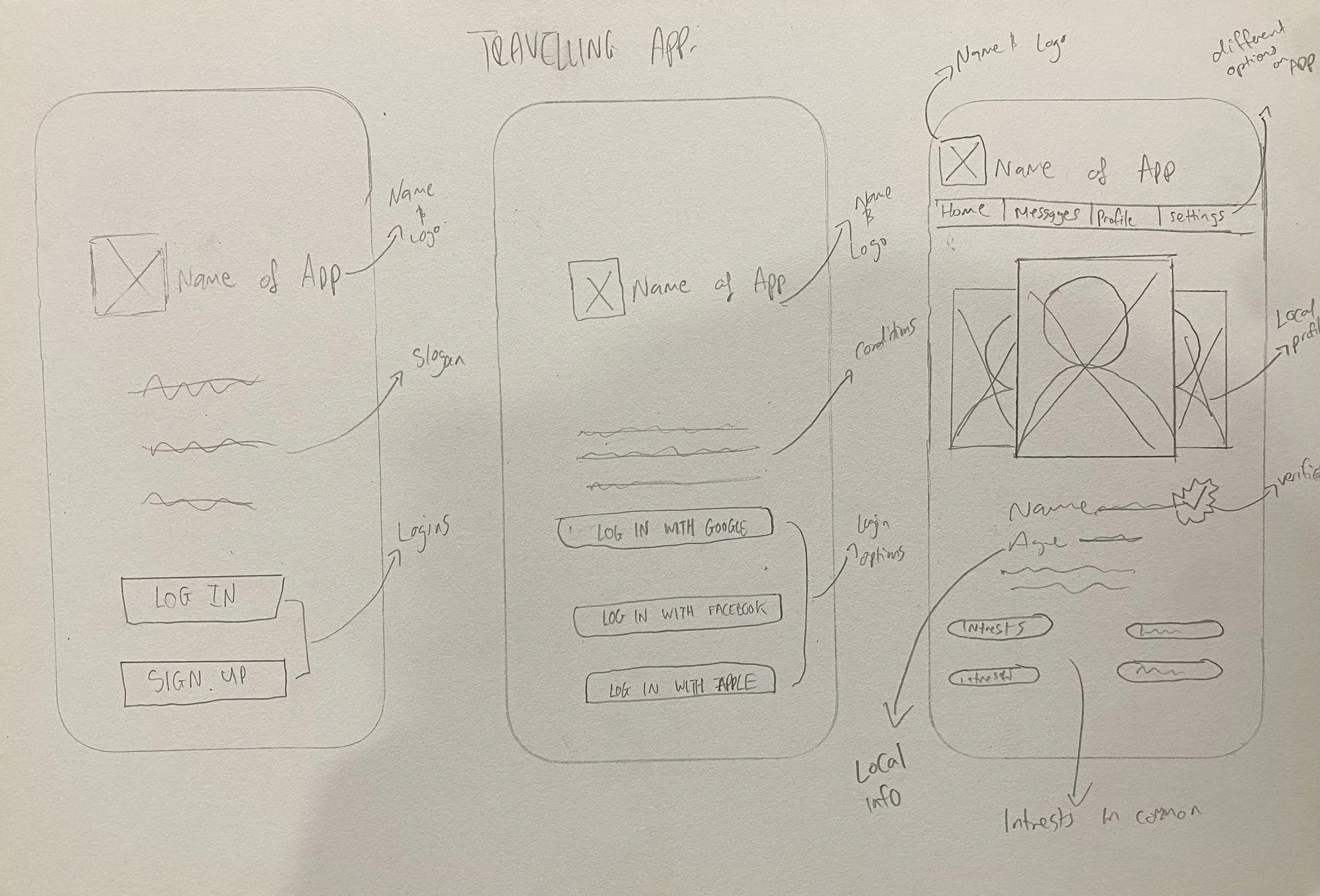 Sketches of the login/signup screens