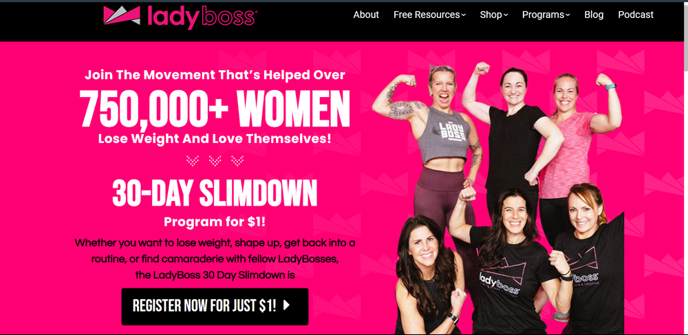 This design captures attention with a bold headline, motivational message, and vibrant pink palette. Smiling, strong women evoke community and empowerment. The clear layout guides users easily, while the standout call-to-action highlights affordability, driving engagement. Subtle patterns and clean typography boost visual appeal without clutter.