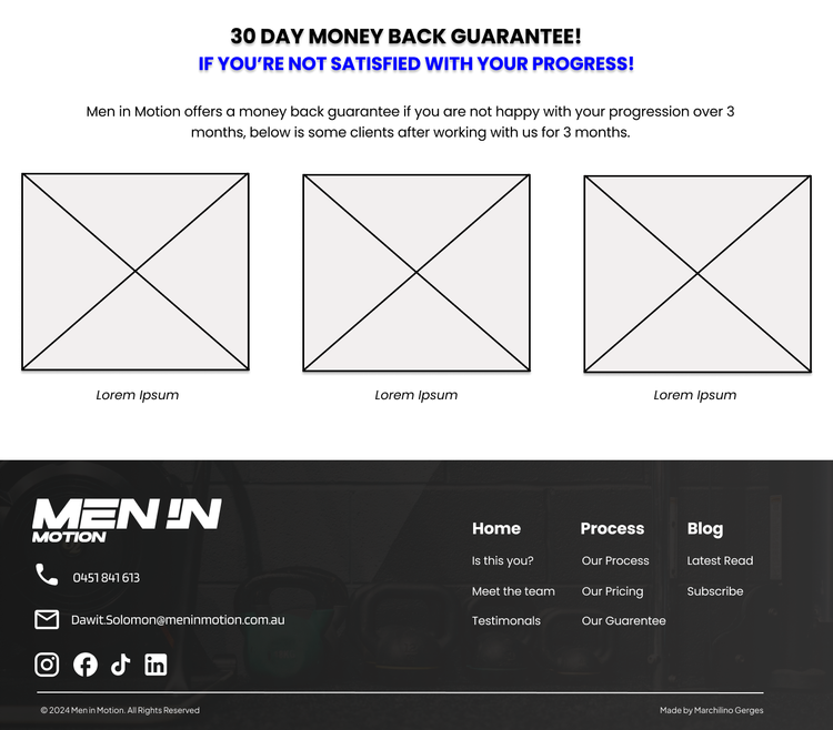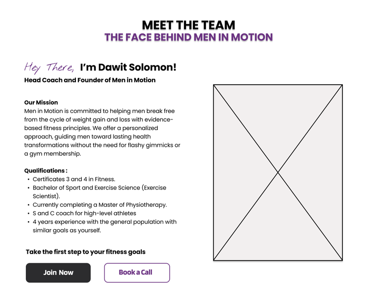 Men in Motion is a fitness program tailored for middle-aged men seeking to regain control over their health and fitness. The program understands the unique challenges this demographic faces, offering a straightforward, goal-oriented approach that fits seamlessly into busy lives. By focusing on convenience, efficiency, and lasting lifestyle changes, Men in Motion empowers men to achieve sustainable results without sacrificing enjoyment in life. With the changes made to the men in motion brand and website we have positively impacted the lives of many different men who seek to regain their health and fitness